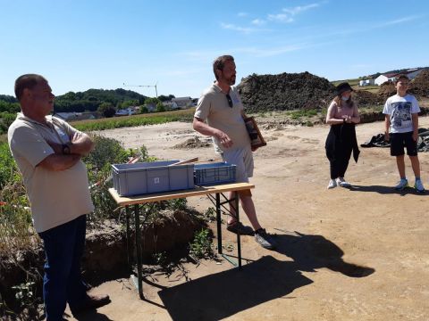 Am Montag, den 12. Juli 2021 gingen die Klassen 3a, 5a und 6a mit ihren Lehrerinnen zu der archäologischen Ausgrabungsstätte in Mamming am Seiheräcker. Die Klassen durften jeweils ca. eine Stunde bleiben, in der Herr Dr. Florian Eibl die Arbeit als Archäologe vorstellte, die Fundstätte in Mamming erklärte und viele Funde zeigte.