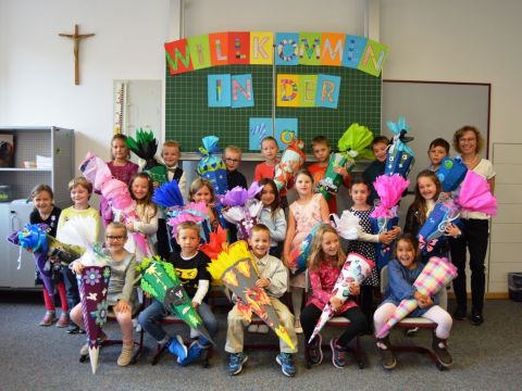Es ist ein aufregender Tag für die insgesamt 37 ABC-Schützen aus den beiden Gemeinden. Ganz gespannt haben die Schulneulinge auf diesen Tag – ihren ersten Schultag - gewartet. Noch etwas schüchtern dreinblickend und mit den bunten Schultüten in der Hand, wurden sie von Rektorin Ulrike Nowak beziehungsweise Konrektor Helmar Ostermeier in Empfang genommen.