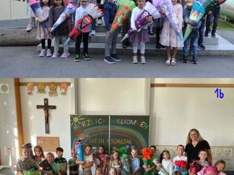 Um 10.30 Uhr war dann der erste Tag auch schon geschafft und die Kinder durften zu Hause in ihre Schultüten schauen. Was sich in den vielen Pferde-, Fußball-, Piraten-, Elfen- und Dinoausier-, Traktor-, Feuerwehr-Schultüten alles versteckte, darauf waren schon alle ganz gespannt und es war nochmals ein besonderes Zuckerl zum ersten Schultag.