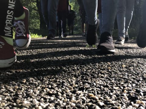 Die 7a hatte sich die Gottfriedinger Staustufe zum Ziel gesetzt und wanderte im flotten Tempo los, gefolgt von der 5a und der 4a, die es etwas langsamer angingen. Doch plötzlich wurden die Siebtklässler von den Großen überholt. Herr Ostermeier führte die Klassen 8a und 9a mit dem Fahrrad an! Es folgte ein riesiger Fahrradtross, der mit großem Hallo und Gelächter die jüngeren Schüler überholte. Das Schlusslicht der lustigen Truppe bildete Herr Trottmann. Die Klassen 8a und 9a radelten bis zum Dingolfinger Bewegungspark.